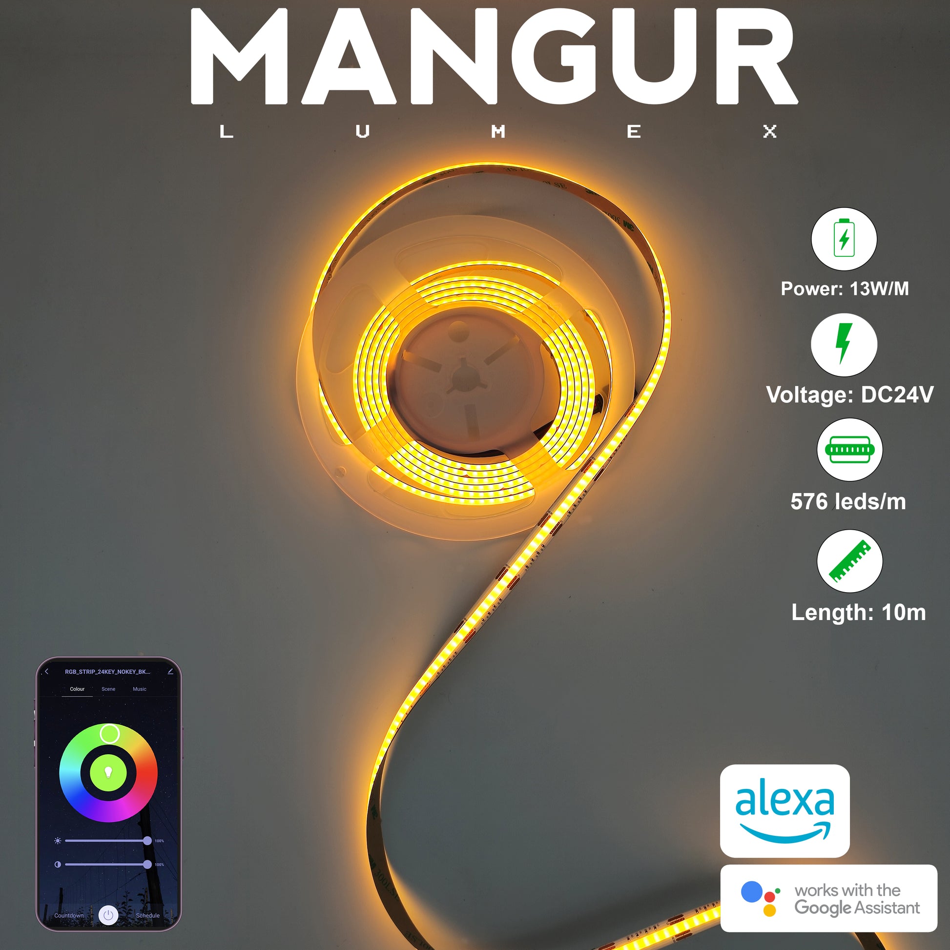 Striscia LED RGB COB 10M, 576 LED/M, 24V Smart, Dimmerabile e Compatibile con Alexa